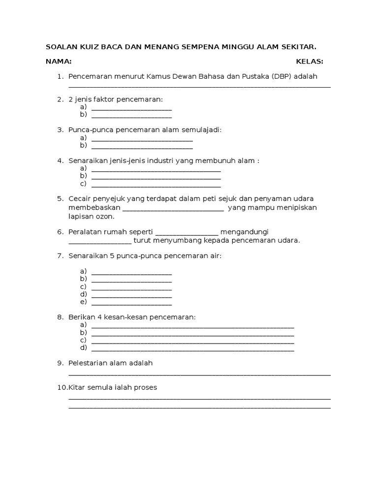 Pantun Soalan Alam Sekitar Persoalan N. Tindakbalas kimia akan berganda apabila suhu meningkat prinsip Vant Hoff 2. Menerusi Portal Rasmi SPA peperiksaan online Pegawai Kawalan Alam Sekitar Gred C41 akan diadakan pada tarikh 22 Ogos 2019 Hari Khamis.